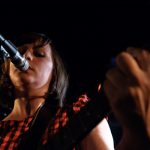 Nysgerrigheden og ikke mindst ønsket om at få bedre forudsætninger for at vurdere aftenens koncert fik min ledsager og jeg til at møffe fremad, så godt vi nu kunne, indtil vi havnede helt ude ved siden af scenen på nogle instrumentkasser. I modsætning til en hel del af aftenens gæster kunne vi herfra se bandet. Og Tracyanne sang sine velskrevne linjer ind i mikrofonen, og den unge trompetist markede sig længe mest med yderst koncentreret triangel- og tamburinspil, så det var en helt fornøjelse at studere.