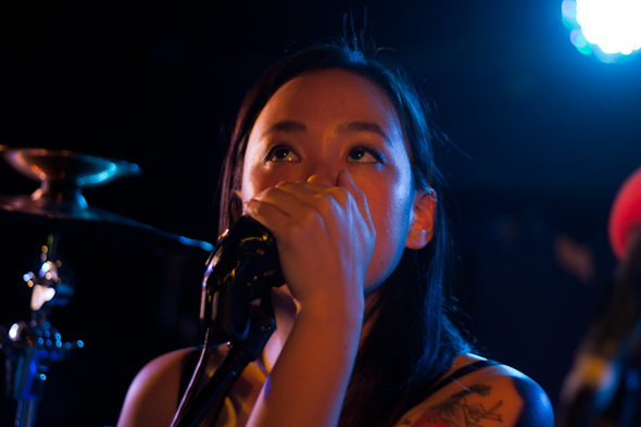 Det var en mørk og stormfuld aften. I mandags, den 8. november 2010, altså. Og Xiu Xiu, Zola Jesus og Former Ghosts spillede på Musikcaféen i Huset i Magstræde i København. Undertoners pt. mest uheldige anmelder, Signe Palsøe, nåede ikke så langt som til at opleve de tre amerikanske bands på scenen, til gengæld nåede hun at opleve en cykeltur i regn og blæst, en ondsindet kantsten, en skadestue og en blå fod. Men Undertoners fotograf Mathias Laurvig nåede heldigvis helskindet frem og dokumenterede aftenens koncerter således: