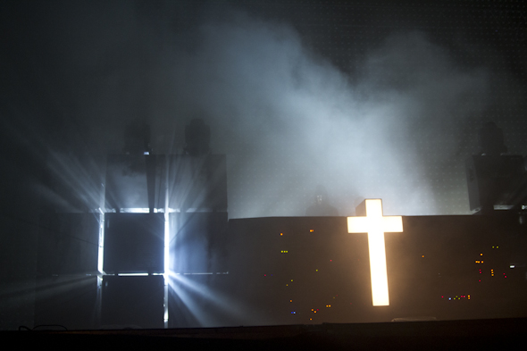 Jo, den var god nok: Efter en hel dag med rock var Gaspard Augé og Xavier de Rosnay sat til at lukke fredag aften med deres kombination af disco, funk og elektronisk house. Det var måske det navn på plakaten, der rent genremæssigt var længst fra nogen af de andre optrædende; men det var ikke nødvendigvis et minus – tværtimod. Personligt synes jeg, at deres debut, † (eller Cross om man vil) fra 2007, er blandt det forrige årtis absolut bedste elektroniske udgivelser, og med Audio, Video Disco, der blev udgivet sidste år, ankommer de to franskmænd yderligere forstærket til aftenens koncert.
