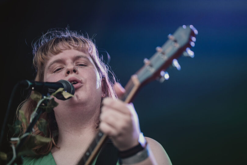 Kl. er lidt i 14, og solen står højt på himlen over campingområdet på denne højhellige søndag på Roskilde Festival; Rising er godt pakket med forventningsfulde festivalgæster i mere eller mindre afklædt tilstand. Og til tonerne af spoken word-åbningen af nummeret “Further Away” fra EP’en Your’re My Favourite Person – I Love You fra i år går danske Emily Holm Nyhuus aka Reveal Party på scenen. Desværre kan man godt komme lidt i tvivl om, om hun overhovedet har lyst til at være der. Mere om det.