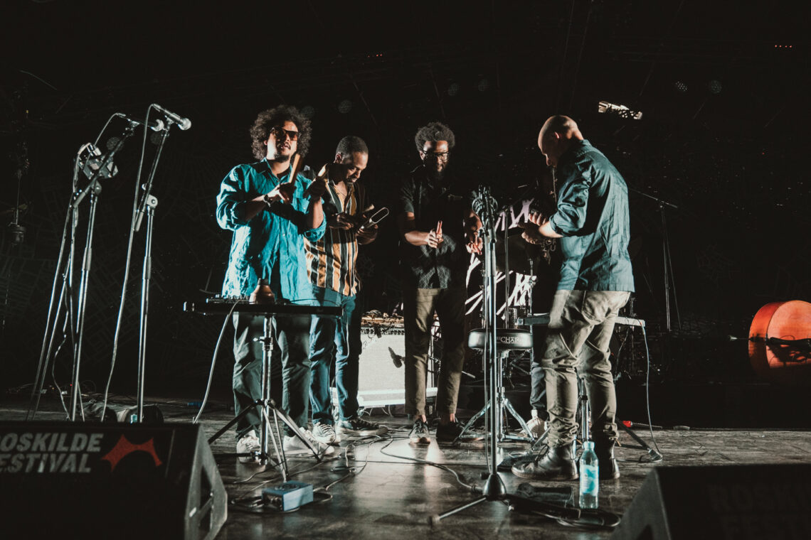 Lyset har endnu ikke dæmpet sig i Roskilde Festivals lille svedhytte af en scene, Gloria, da de fem medlemmer af Irreversible Entanglement pludselig bevæger sig ind på scenen. Bandet der blev dannet i 2015 til en protest imod politidrabet på en caribisk immigrant er hver især bevæbnet med forskellige små håndholdte perkussionsinstrumenter, som de slår på eller rasler med. Ikke ét ord bliver ytret, men alligevel står jeg med en følelse af, at nu bliver vi kaldt til samling for at overvære noget særligt.