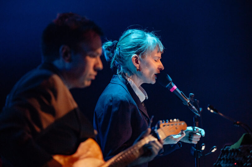 Fælles for duoens sange var Voldens dansable beats, der både nikkede genkendende til 70’ernes disco og 80’ernes synthpop. Små, minimalistiske trommerytmer, der kørte i ring, indtil han i nærmest hvert nummer begyndte at dekonstruere rytmerne, forvrænge lydbilledet og pitche tonerne op og ned, så de lød helt moste. Helt ubesværet viklede Hval sin ualmindeligt smukke røst og sine glidende synthstrøg ind og ud af Voldens hakkende, skrattende baggrundstæppe. Hendes sangstemme var måske lige lovlig gemt i lydbilledet fra start af, men siden fandt den let hviskende vokal sin plads i det større hele. En dragende sirene i et susende virvar.